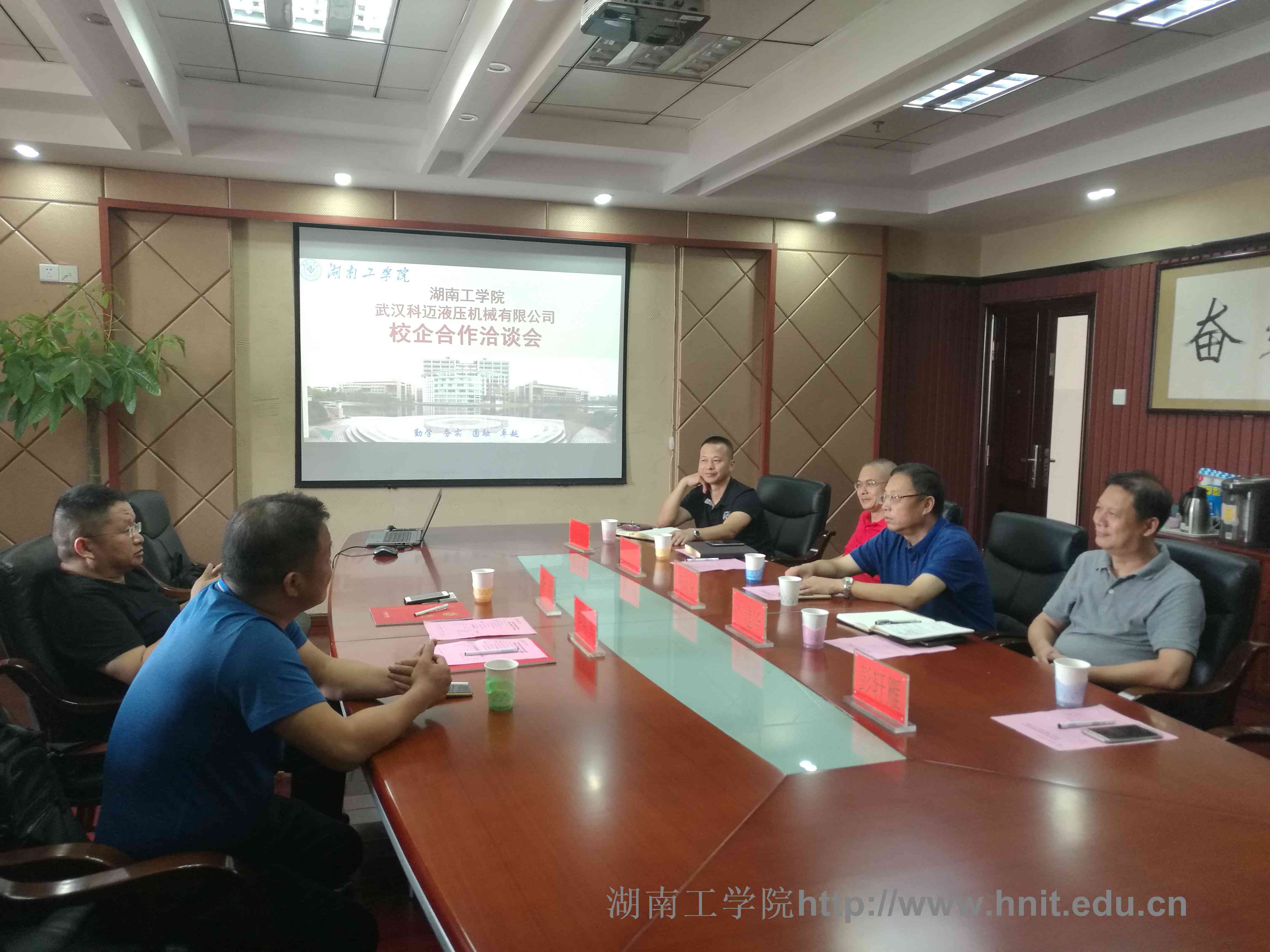 党委书记谢国保对武汉科迈液压机械有限公司一行的到来表示热烈欢迎,他指出,校友李军从最基层做起、高度的事业心、创新创业就业的理念值得在学生的教育中推广。校企双方要以机械、计算机相关学科专业作为合作的切入点,帮助校友企业解决人才、技术等问题,校企联合培养人才,争取合作共赢。